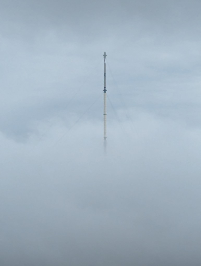 Well first it was alot of reading before I settled on whats more like Pirate Radio than an antena through the mist. So up I went on Winter Hill in Lancashire where I was able to capture this Antena coming out through the clouds.